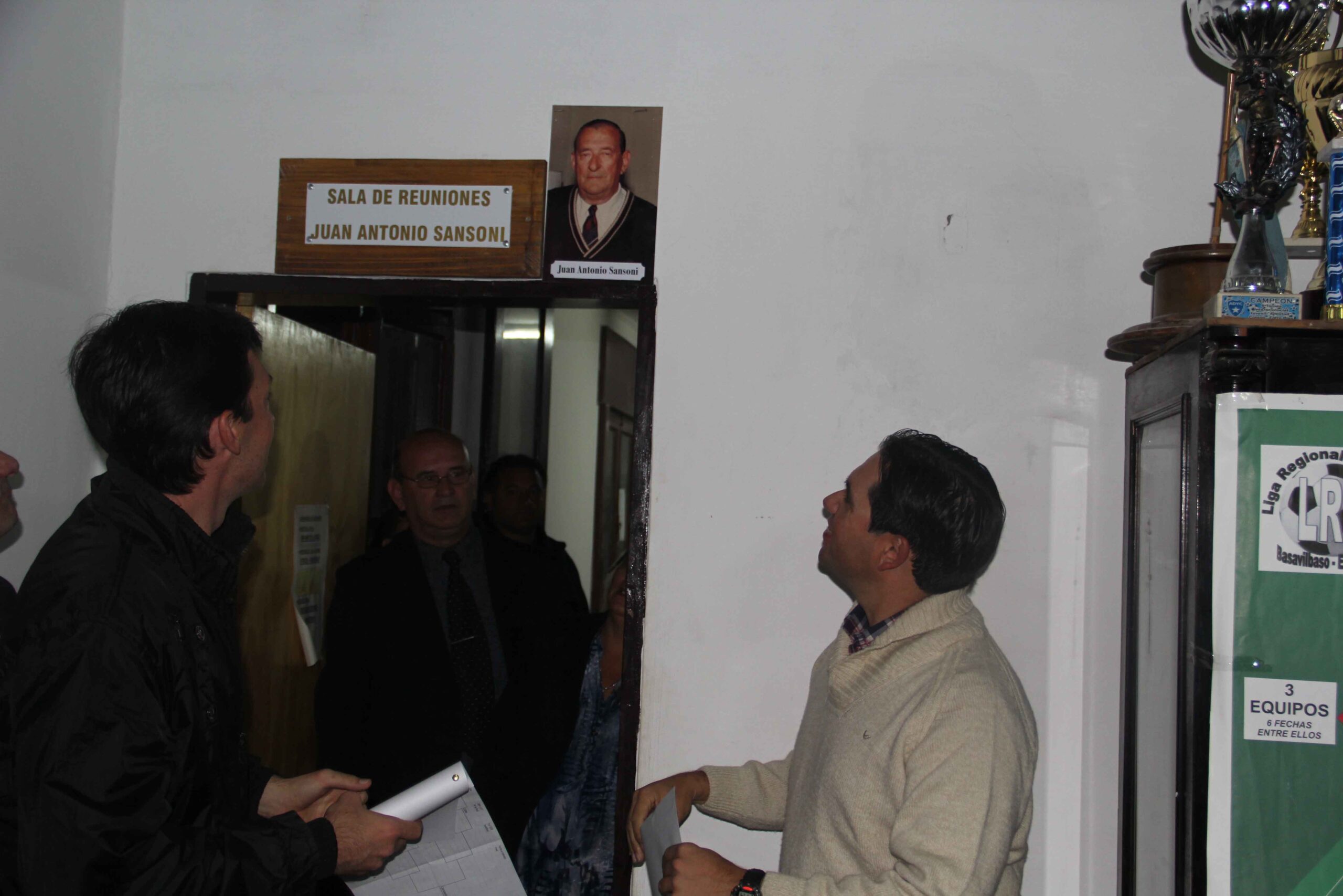 (La foto principal muestra al actual presidente, Claudio Aguirre, con Roque Ramón Galotto, alguien importante en la Liga. Lo acompañan el recordado Rubén Ardaiz, Luis Bonus gran dirigente de Atlético Uruguay y Osvaldo López, de la Dirección de Deportes)