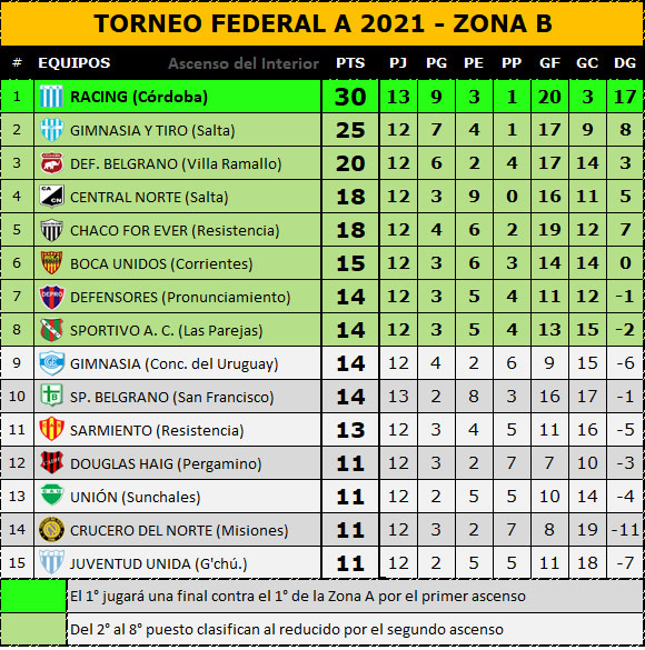Cumplidas 13 fechas así están las posiciones de la Zona B (gentileza Ascenso del Interior):