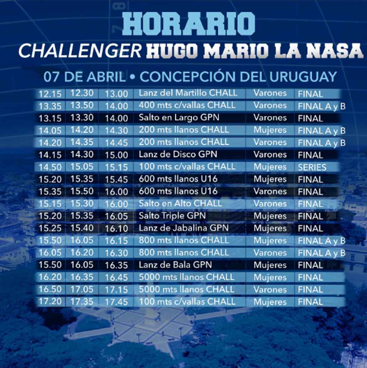 Este domingo, desde las 13:00, se disputará la segunda parte de estos desafíos con la disputa del Challenger WA «Hugo Mario La Nasa». Ahí estarán compitiendo tres uruguayenses más, todos en lanzamiento del martillo: Sebastián Tommasi, Andrés Charadía y Francisco Galotto. Estos estarán compitiendo desde las 13:00.