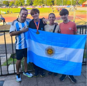 Después del podio y sin soltar su medalla el uruguayense nos contaba que «Este bronce para mi significan muchas horas de esfuerzo, mucho trabajo, entrenamientos y competencias donde no se veían los resultados pero también es premio a seguir intentándolo. Es un premio que me pone muy orgulloso y pone en valor lo que hago día a día en la pista del CEF Nº 3 y que me ha permitido llegar hasta donde estoy ahora». Pero no se olvidó de mencionar «a los profes que tanto trabajan y rezongan con nosotros y a la familia que siempre está y apoya».