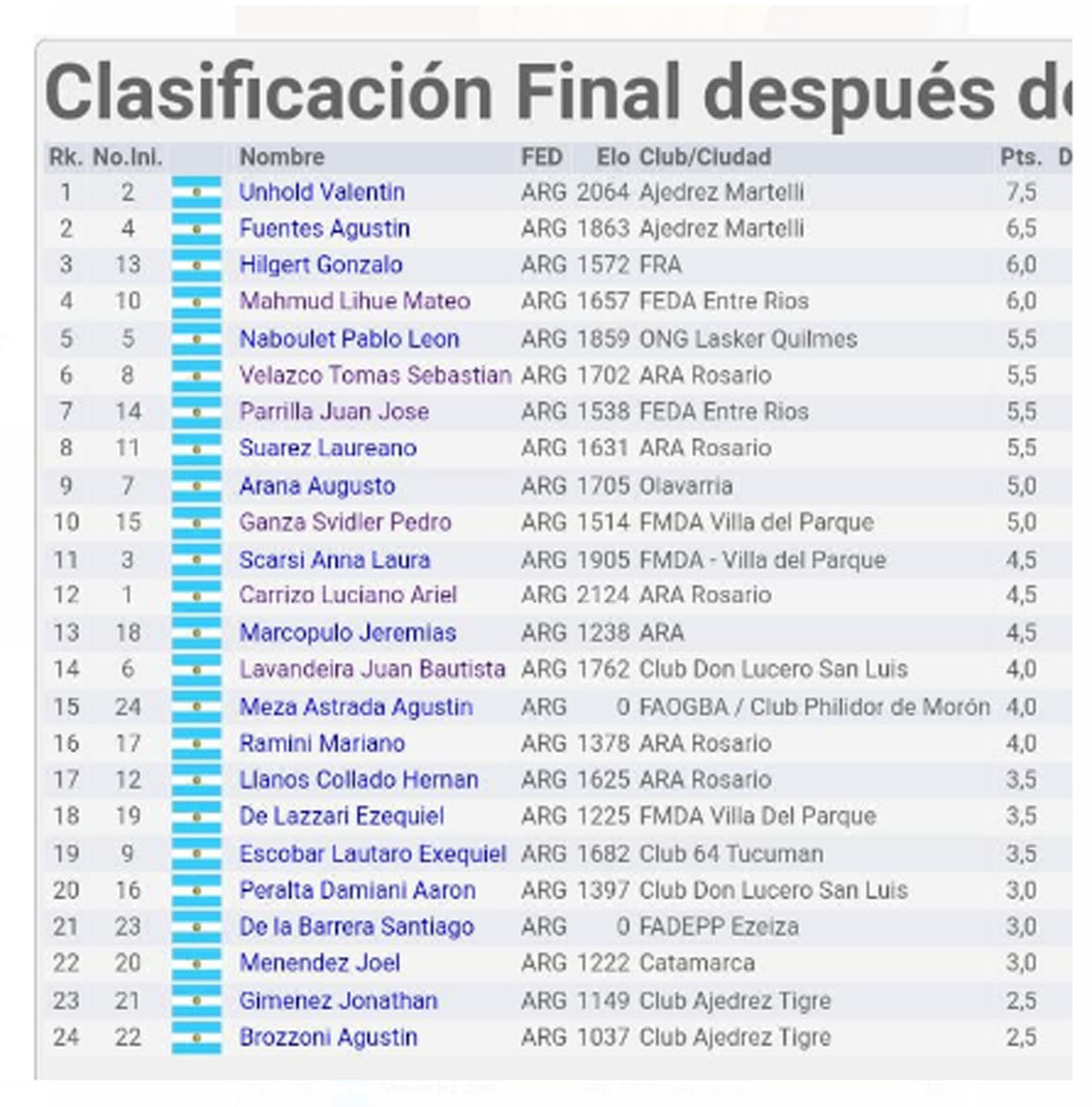 En Sub 16, Juan Parrilla obtuvo el 7° puesto con 5.5 pts