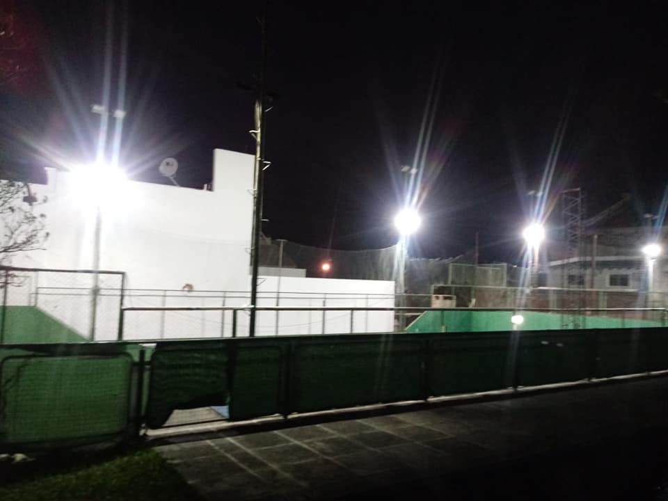Nos cuenta Andrea que «hoy se terminaron de colocar los 8 reflectores que faltaban por lo que ahora el complejo tiene toda la iluminación led de 200w en cada torre. Cada cancha consta de 6 torres de iluminación».