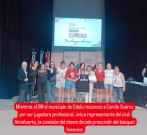 «Nuestro querido club Almafuerte hoy decide cerrarnos las puertas y darle la espalda al femenino. Qué irónico ¿no?, después de ser por tantos años un club bandera en el básquet de la ciudad, con Yolanda Ventos como entrenadora y formadora, y con nuestra jugadora representante en la Selección Argentina Camila Suárez.
