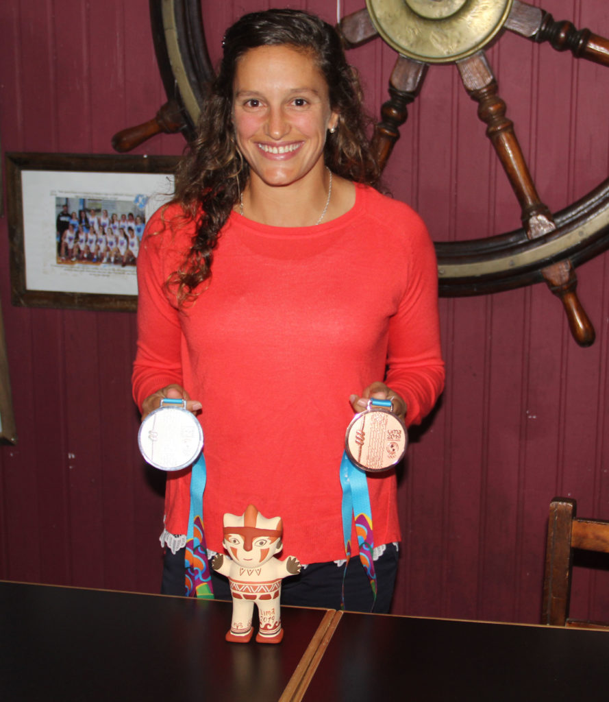 La palista, doble medallista panamericana, fue recibida esta noche por su club, Regatas Uruguay.