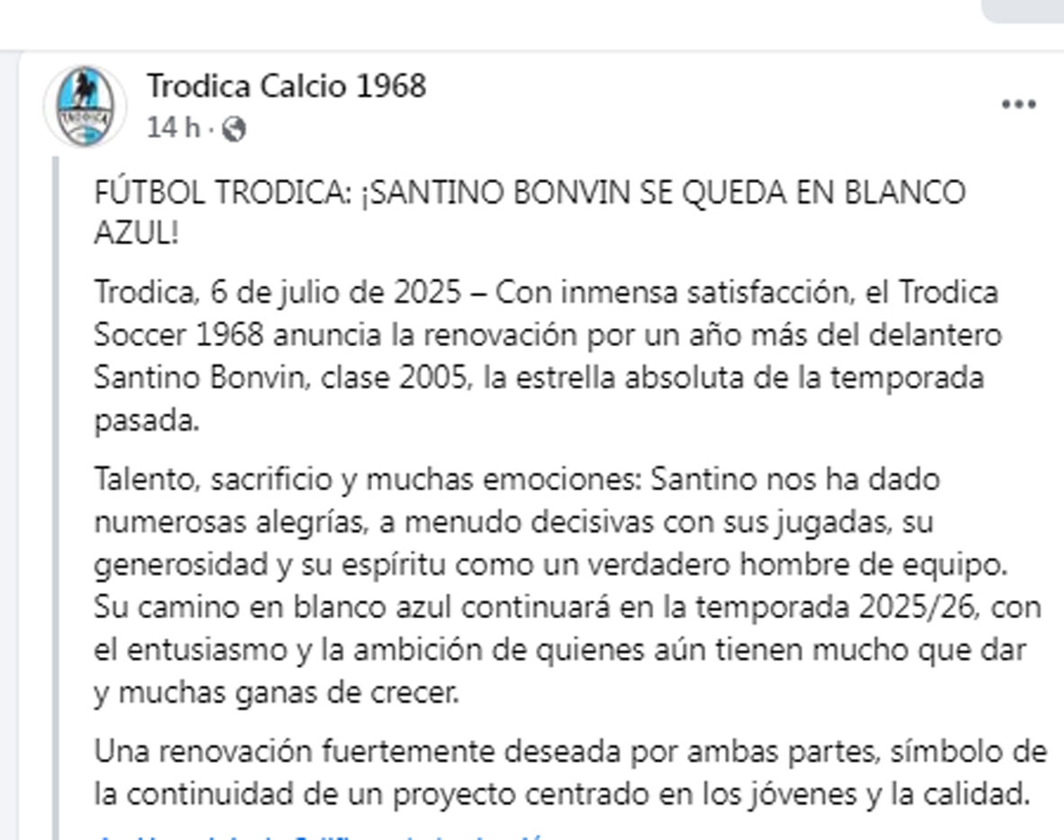 Previo a su viaje y justo el día que desde Tródica se anunció que renovó contrato dialogamos con el ex jugador de Gimnasia y Esgrima acerca de lo que se viene. Y en su anuncio el club realiza palabras más que elogiosas para el argentino; «Talento, sacrificio y muchas emociones: Santino nos ha dado numerosas alegrías, a menudo decisivas con sus jugadas, su generosidad y su espíritu como un verdadero hombre de equipo».