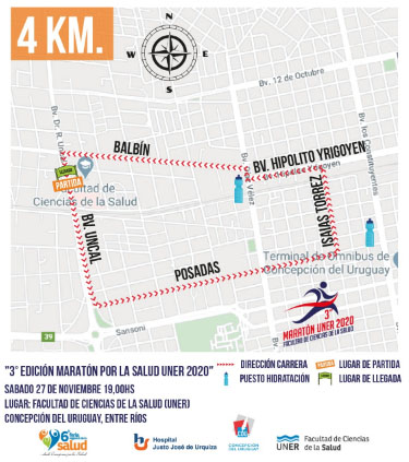 El Circuito de Maratones de nuestra ciudad continuará este sábado co la realización de la 3ª Edición de la «Maratón por la Salud UNER» organizada por la Facultad de Ciencias de la Salud en el marco de la Feria Regional de la Salud y el auspicio de la Dirección de Deportes esperándose que buen número de atletas digan presente.