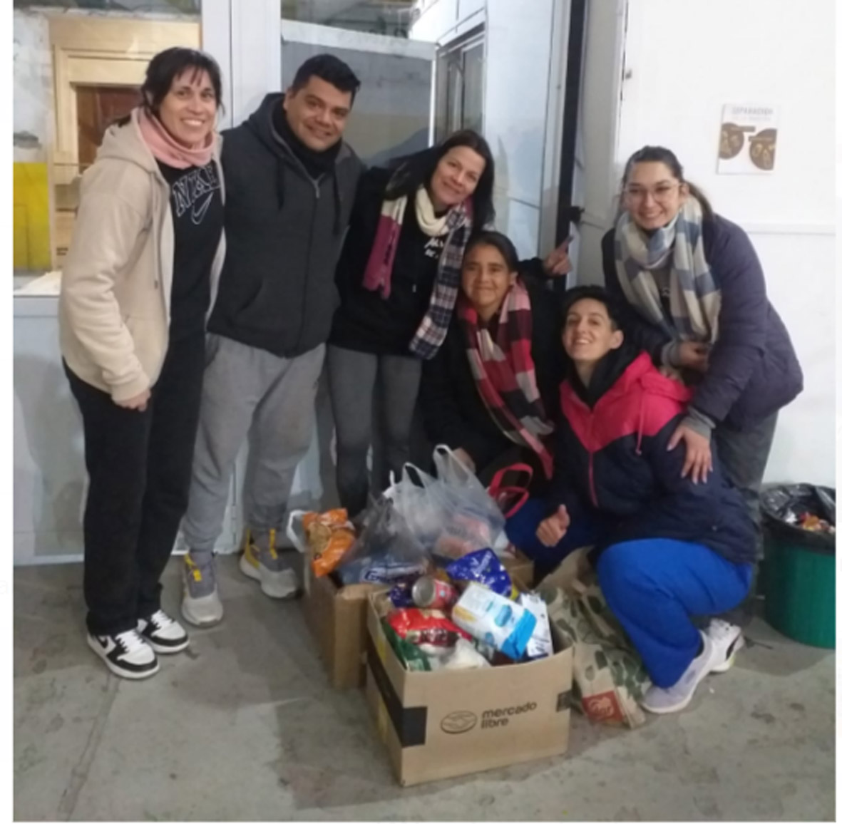 Integrantes del grupo de básquetbol del club Almafuerte hicieron entrega a la encargada del merendero Carita Feliz, Jorgelina Domínguez, de los productos que donaron las personas que concurrieron a esta primer fecha del Amistoso de Básquetbol.