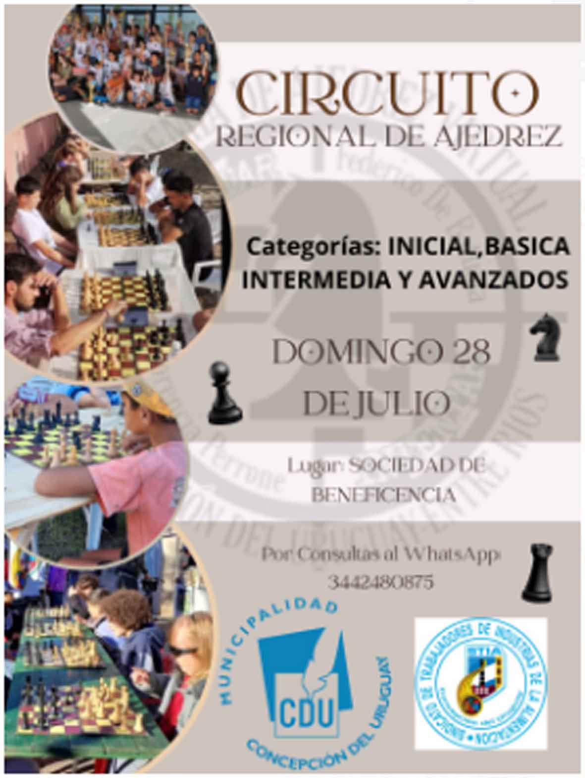 El salón de la Sociedad de Beneficencia será el escenario de la primera fecha del Circuito Regional de Ajedrez del que estarán participando aficionados de nuestra ciudad, Paysandú, Colón, San Salvador, Villaguay, Caseros y Gualeguay con más de 50 aficionados participando.