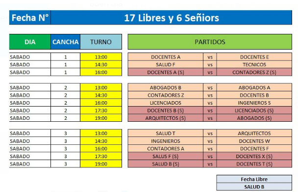 Hablábamos de una fecha clave la que pasó porque Salud B debía jugarse sus últimas posibilidades ante los Arquitectos y los Docentes E y Contadores A se jugaban todo en los 75 minutos que dura cada uno de los partidos de los Libres.