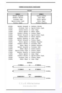 Este sábado se jugará desde las 9:30, en el club Villa Las Lomas, el torneo del beach voley reservado para duplas de varones.