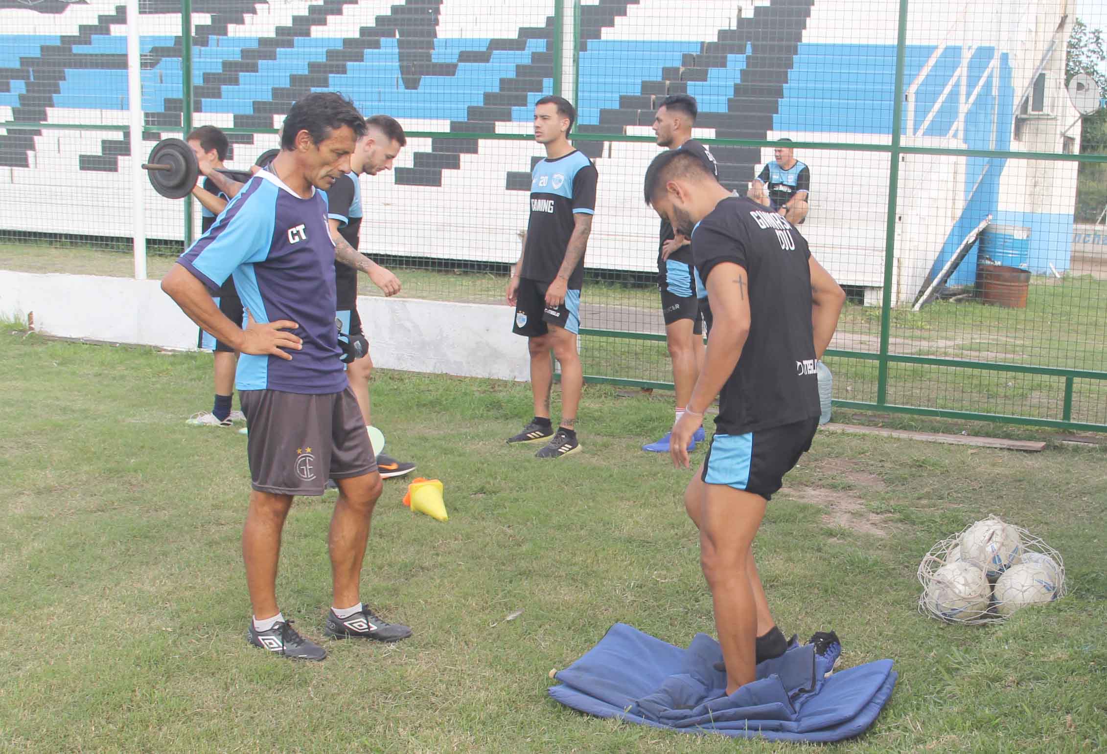 El entrenamiento del Lobo arrancó con una larga entrada en calor a cargo del profesor Ismael Basconcel que se realizó en la cancha auxiliar mientras los cuatro arqueros trabajaba con Julio Santa Coloma.