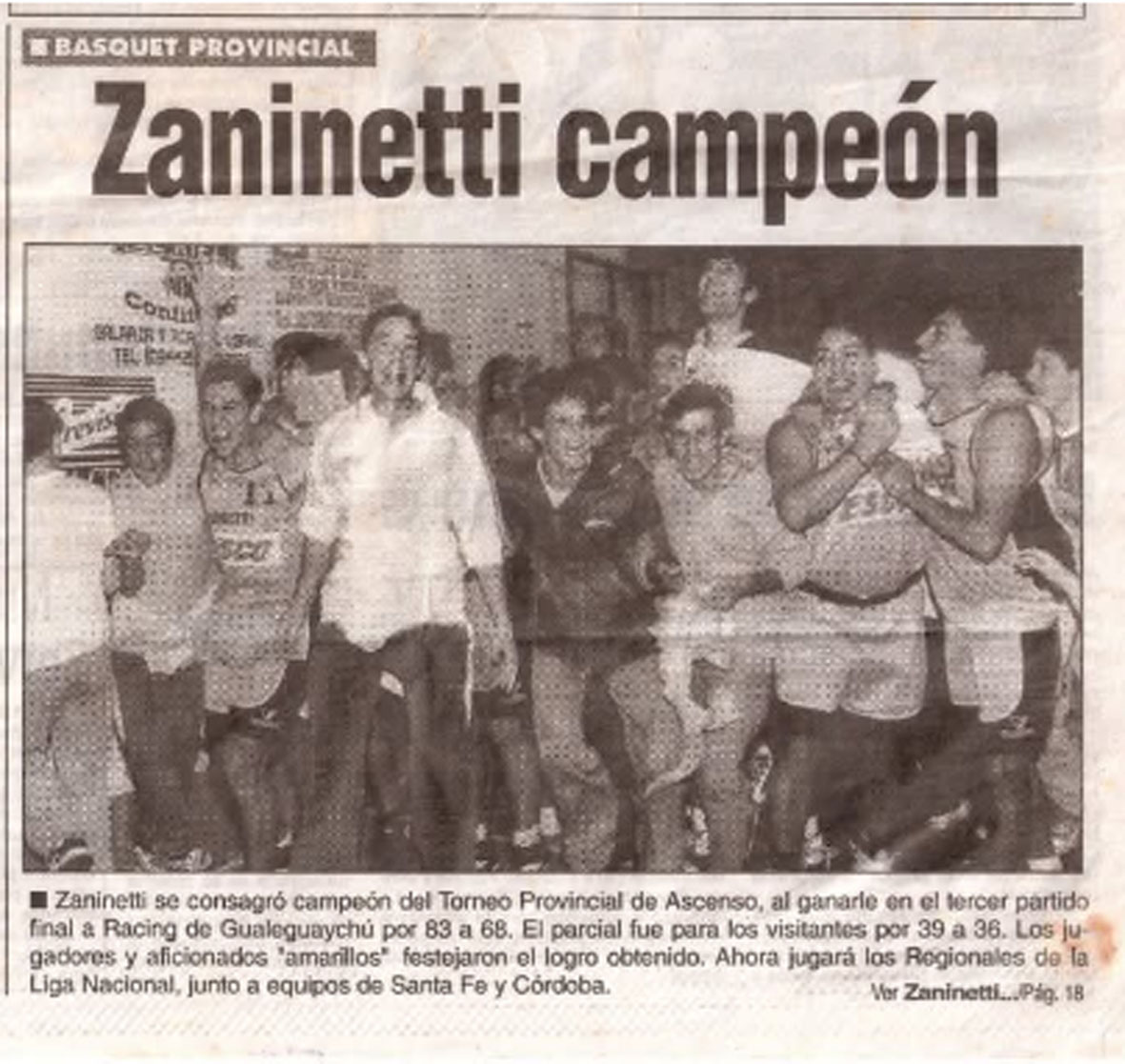 (Por DATA Básquet). Este 17 de abril se cumplen 25 años de la hazaña más importante en la historia de Zaninetti con aquella campaña gran campaña que culminó con la obtención del título en la Liga Provincial en la temporada 1999/00.