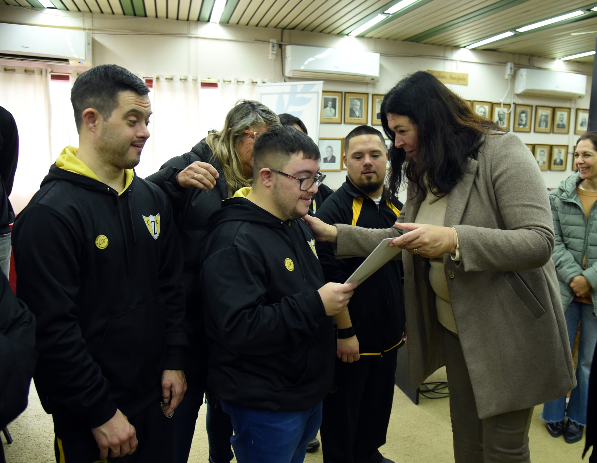 En total, ocho jugadores integran el equipo “amarillo”, que viajan acompañados de su profesora Natalia Carvajal y de sus respectivas familias. Buena parte del plantel estuvo esta mañana en la sala de sesiones del Concejo, durante una ceremonia en la que los integrantes de la plantilla recibieron palabras de reconocimiento de las autoridades uruguayenses.